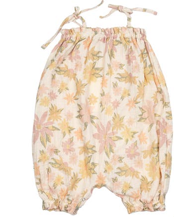 Crafted from 100% cotton gauze with an airy, soft texture, this piece features adjustable tie straps for a flexible fit and elastic leg openings for added comfort. Its roomy bubble silhouette is perfect for layering or wearing on its own, with a button closure at the bottom for easy changes. Lovingly made in Peru with care and attention to detail.