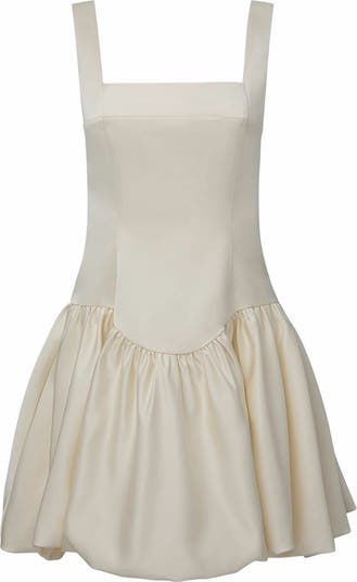 - Made of duchess satin, this corseted dress features a contouring bodice, structured with boning, and a square neckline framed by wide straps. Its curved waist seam draws the silhouette in before giving way to a voluminous bubble-hem miniskirt. Tight fit at bodice Bubble hem skirt Mini length Invisible back zipper Bodice boning 100% Polyester Dry clean only.