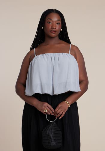 Add subtle volume to your look with this cropped bubble top designed with a softly structured shape. A waist-length cut and elastic hem create a clean, modern silhouette that's endlessly pairable.