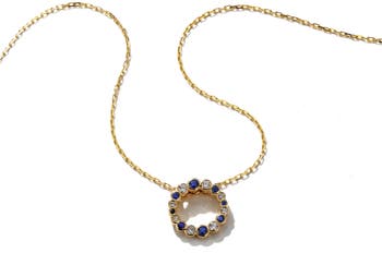 Sparkling gemstones and dazzling diamonds play beautifully together on the circle pendant of this polished necklace made from 18-karat gold.