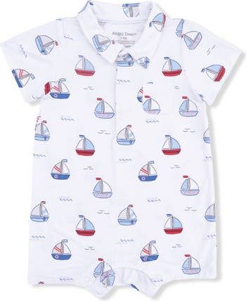 Charming sailboats inspire nautical adventures when baby sports this polo-inspired shortall made from soft, stretchy fabric.