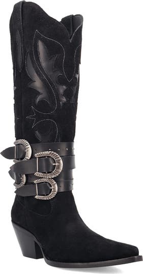 Stacked buckle straps add to the Western glamour of this knee-high boot that'll have a reoccurring role in future good times.