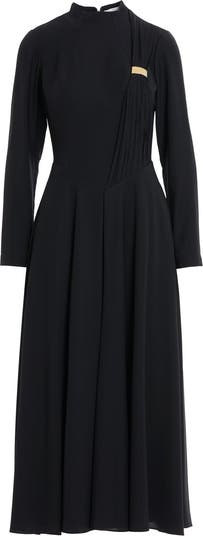 Buckle Detail Mock Neck Long Sleeve Black Midi Dress