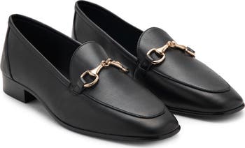 Polished bit hardware shines brightly atop the smooth leather construction of a loafer designed to instantly elevate casual or special-occasion looks.