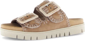 Handcrafted in Europe from premium materials for durability, this lightweight sandal features dual adjustable buckle straps outlined in whipstitch trim.