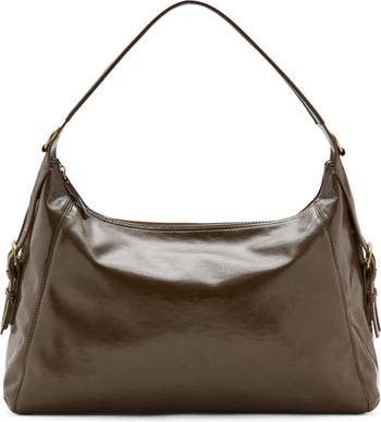 Glossy, finely grained faux leather replicates the supple feel of the real deal with this classic shoulder bag suspended from a buckled strap.