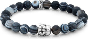 Built in our Los Angeles studios to be stackable or worn solo. Beads are frosted agate and hardware is cast and finished in sterling silver. Dig it…
