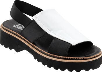 Goring straps and a rich leather upper lend modern elements to a sporty slingback sandal set on a subtle platform and durable lug sole.
