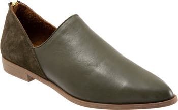 Tonal paneling elevates the minimalist silhouette of a pointy-toe loafer with a rear zip closure for an easy fit.