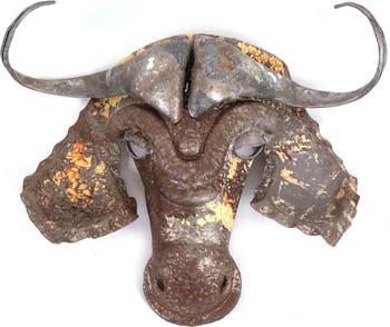 The Cape Buffalo is a familiar sight to visitors of African parks and reserves. Massive in size, it has unique horns that are fused at the base forming a continuous bone shield called a 'boss.' Our striking buffalo animal mask is handmade from recycled car tin by artisans in Zimbabwe. Enjoy this contemporary Junkyard Safari Trophy that has enormous personality and is eco-friendly! Individual pieces will vary in color
