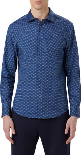 Crisp cotton with comfortable stretch makes this button-up a favorite from work days to date nights.