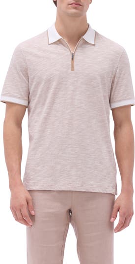 A soft, breathable blend of cotton and linen brings easy comfort to a polo patterned with fine, heathery microstripes and tipped at the collar for a sporty finish.