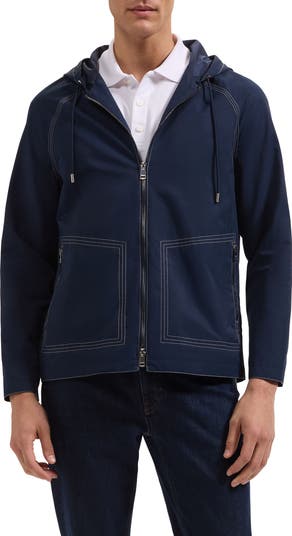 This hooded jacket made from a lightweight cotton blend that's water repellent is a perfect outer layer in stormy weather.