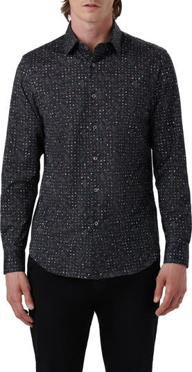 An abstract print adds modern dimension to a sport shirt made from breathable, wrinkle-resistant OoohCotton to keep you polished and comfortable.
