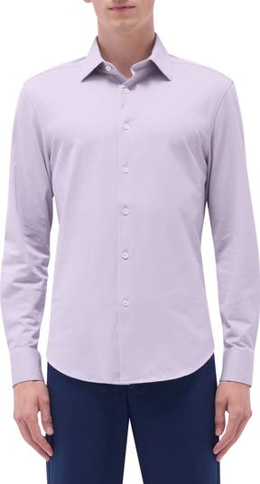 A diagonal twill pattern adds subtle dimension to a sport shirt cut from breathable, wrinkle-resistant OoohCotton made with comfortable eight-way stretch.