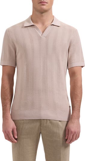 Johnny Collar Basket Stitch Cotton Blend Short Sleeve Sweater