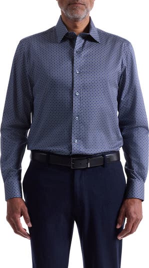 Tailored from soft, breathable cotton, this geometric-patterned shirt features a crisp collar and a lower hem that stays tucked and looks great if you leave it hanging out. Button the adjustable cuffs for everyday or use your own cuff links to add an elevated-casual finish.