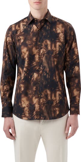 A moody shadow print brings a contemporary look to a sport shirt made from stretchy, breathable cotton for a flexible fit.