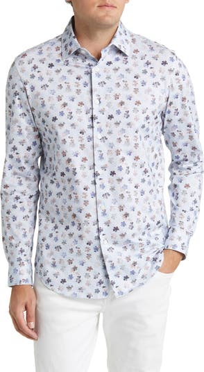 Stay comfy and polished from day to night in this printed, knit sport shirt made from breathable, eight-way-stretch OoohCotton that resists wrinkles.
