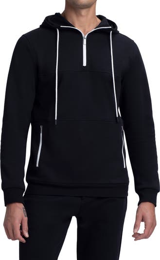 A laid-back choice for your off-duty wardrobe, this cotton-blend hoodie featuring a quarter-zip closure is a layering piece that's essential for a brisk day.