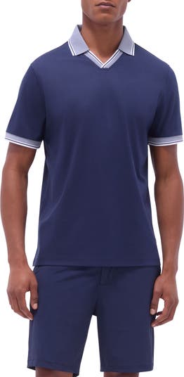 Crisp tipping accents the collar, placket and cuffs of this polo made of exceptionally soft pima cotton and styled with a johnny collar for a relaxed, sporty look.