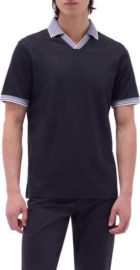 Crisp tipping accents the collar, placket and cuffs of this polo made of exceptionally soft pima cotton and styled with a johnny collar for a relaxed, sporty look.