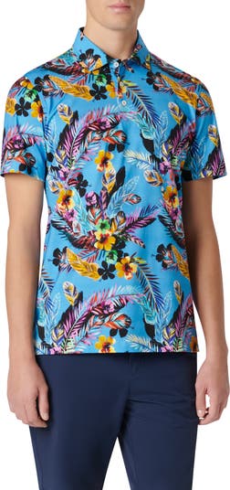 Tropical flowers invite cooling breezes in a polo made from breathable, eight-way-stretch OoohCotton that resists wrinkles.