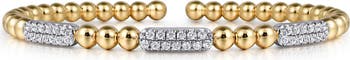 Icy bars of diamonds station this beaded 14-karat gold cuff bracelet that will bring rich sparkle and texture to any stack.