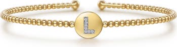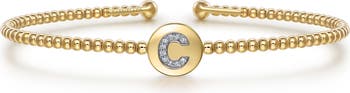 Add a sparkly pop of personalization to your stack with this diamond initial cuff bracelet cast in 14-karat gold.