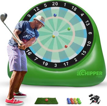 Play two of your favorite games in a huge and exciting new way! Launch balls at the jumbo dartboard in this epic golf and dart game combo. With a huge dartboard that stands 6 feet tall, it’s easy for both adults and kids to play and will keep them occupied for hours. Perfect for expert golfers to practice their swing and for non-golfers to simply have fun. It also includes 10+ SWOOC Games exclusives and comes with a Happiness Guarantee to make sure that the fun never stops. So grab your clubs, take a swing, and become the Bull Chipper Champ!