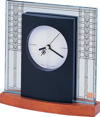 From the Frank Lloyd Wright Collection®. Solid wood base, light cherry stain. Mineral glass panel. Clear protective lens. Engraving plate included. Adapted from the art glass window in the living room of the W.A. Glasner House, Glencoe, Illinois, 1905.