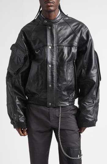 Take style cues from Martine Rose's retro-eclectic runway characters with this '80s-throwback leather jacket from the fall '25 collection that celebrates the colorful personalities and curated treasures found in European street markets. This pocket-heavy design playfully riffs off the handy belt bags sported by tourists and treasure hunters alike.