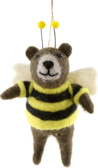 Made from wool felt and adorably outfitted like a fuzzy bee, this bear ornament adds buzzy charm to your festive holiday decorations.