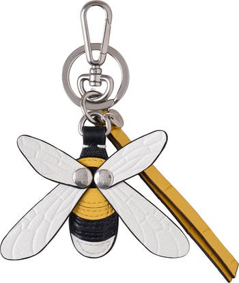 Logo-engraved metal brads pin the articulated wings of this leather bumble bee bag charm/keyring combo summertime accessory that's all the buzz.