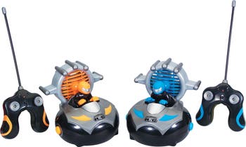 Kid Galaxy presents their Bump N Chuck R/C Bumper Car Set! These are remote controlled vehicles with competing fun. Comes in a pair to run and hit your opponent to score and win. When your vehicle is hit, the figure will pop out. For those ages 5 years and up.