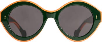 Round lenses are outlined in green and gold on the frame of these bold sunglasses from the iconic design house.