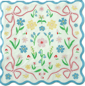 Featuring fluffy bunnies, whimsical mushrooms, and dainty bows, our playful bunnies in the garden collection brings a touch of woodland enchantment to baby showers, easter celebrations and garden-themed parties! Sweet florals and darling bows grace our floral bunny large napkins and add a soft and sweet touch to dreamy tea parties, garden gatherings, and baby showers.