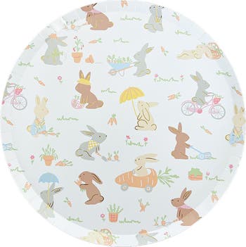 Hop on over to the garden! These large plates feature adorable bunnies tending to their carrot garden. Perfect for Easter celebrations and springtime gatherings. Add a touch of cuteness to your Spring table with these charming plates.