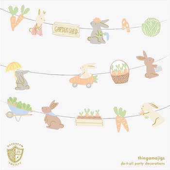 Hop on over to the Garden! Let these Bunnies In The Garden Thingamajigs hop into your heart! This adorable bunny banner is perfect for adding a touch of whimsy to your space. What exactly are thingamajigs, you ask?! They are our favorite do-it-all party decorations! String them together to make a garland, attach them to balloons, hang them on the wall...you decide!