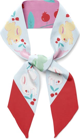 Made of hundred percent twill silk double sided, for double fun. Our skinny scarf silk twilly is perfect as head scarf, bracelet or tie to your hair bun, to decorate your bag handle so many possibilities, the sky is the limit! One of our main philosophies is to design versatile accessories that can be worn in multiple ways and last forever. Our designs also reflect our love for nature and animals in our prints. From Scandinavian Fjords where the berries grow in the fall & the candy bunnies jump to get some. 100% Twill Silk 2.5 in x 45 in / 6 cm x 114 cm Double Sided Illustrated by hand in California by Cris Rose-Guizar Ethically sourced Weight: 1.0 oz
