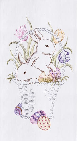 From the intricate design of the easter eggs, to the pair of adorable bunnies, this springtime embroidered flour sack towel is a must-have.