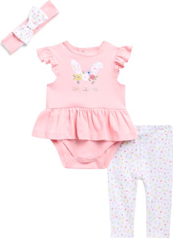 Some bunny special you know will be camera ready in this adorable bodysuit and leggings set complete with a coordinating headband.