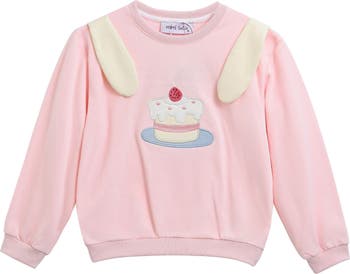 This cheerful sweatshirt serves up a sweet dose of imagination with its embroidered strawberry cake and soft bunny-ear shoulders. Perfect for playful outings or cozy days in, it blends comfort with whimsical charm that little ones will love.