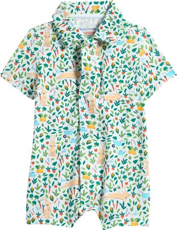 A tiny patch pocket updates the front of this stretchy polo romper made with signature magnetic closures that add convenience to every diaper change.