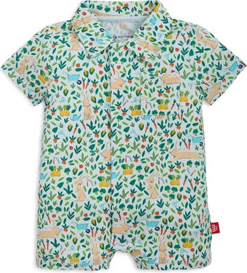 A tiny patch pocket updates the front of this stretchy polo romper made with signature magnetic closures that add convenience to every diaper change.
