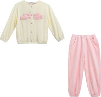This charming outfit set blends soft pastels with playful details for a look that’s both cozy and full of character. The top features a sweet bow accent and surprise bunny ears at the back, while the joggers offer comfort and versatility for everyday adventures.