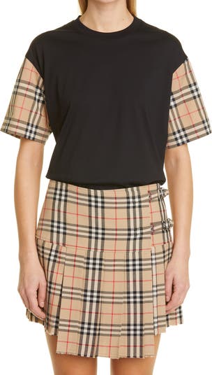Burberry's heritage check at the sleeves boldly frames this cotton-jersey T-shirt done in a relaxed, oversized silhouette.