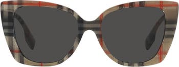 An iconic print and logo hardware mark the temples of sleek sunglasses fashioned in a retro-inspired cat-eye silhouette.