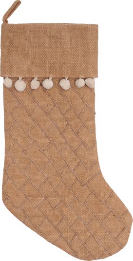 Bring a touch of rustic charm to Christmas with our Burlap Textured Stocking. This stocking features a delightful, quilted texture that adds depth and character. Accented with playful white pom poms dangling gracefully below the top flap, it beautifully balances tradition with a modern twist. Perfect for hanging by the fireplace or as a whimsical addition to any holiday display, this stocking is a unique natural-inspired choice for celebrating the season.