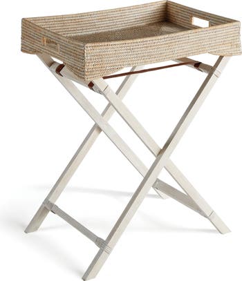 - Our Burma Rattan Butler Tray Table is crafted in classic coastal style. With foldable legs that flatten & can be stored away, it makes a great piece for small space entertaining.